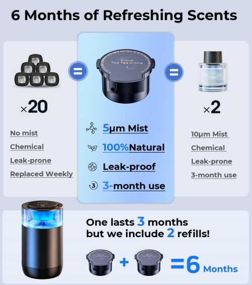 【Intelligent AIChip - Auto ON/OFF】Automatically ON/OFF synchronized with your journey! Experience the Latest in Smart car air freshener. Equipped with a built-in vibration sensor chip, this car diffuser automatically activates when you're in the car and deactivates when you exit. Enjoy the delightful fragrance effortlessly during every commute or outing. Embracing the convenience of smart car air freshener diffuser technology!